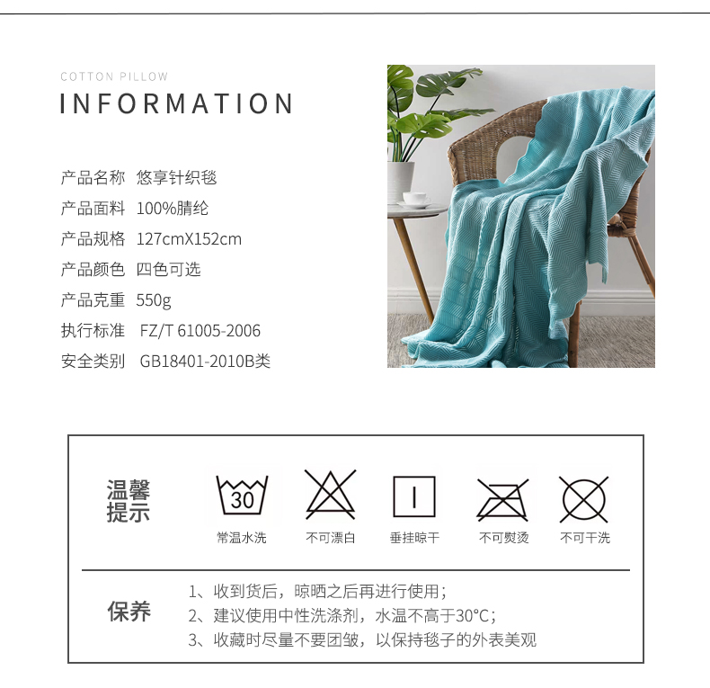 針織柔軟面料,收針平整,造型雅致,松軟觸感,休閑風格,方便攜帶,辦公室、臥室、客廳、車上、旅行時都可使用。