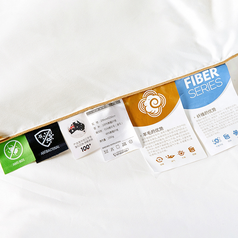 產(chǎn)品名稱:澳洲抗菌防螨羊毛被 產(chǎn)品尺寸:200*230cm 產(chǎn)品面料:聚酯纖維(抗菌防螨) 填充物:25%羽絲絨+50%澳毛+25%羽絲絨 填充物克重:2200g/2500g